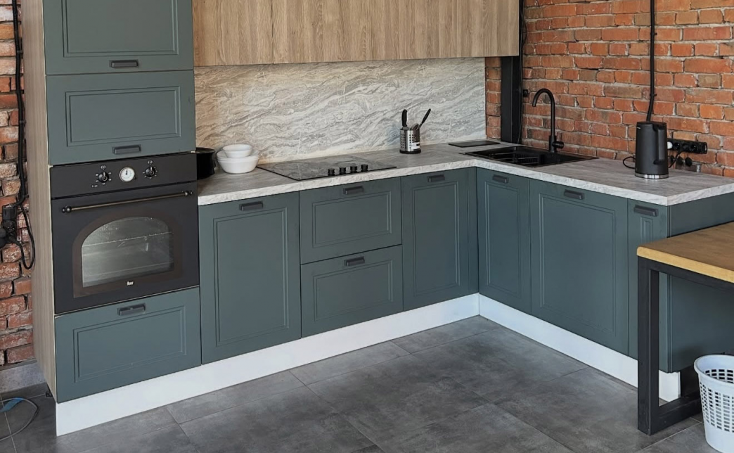 Полностью оснащенная кухня: духовка, плита, чайник, посуда - все для уюта.