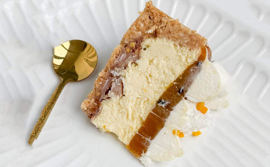 Состав: крамбл шоколадный/ванильный, кранч, сырный слой, конфи ягод, карамелизированные ягоды и фрукты