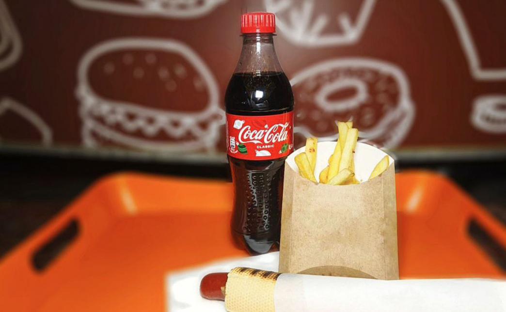 Состав сета: картофель фри (160 г), френч-дог (150 г), напиток на выбор: кока-кола, фанта, спрайт (0,5 л)