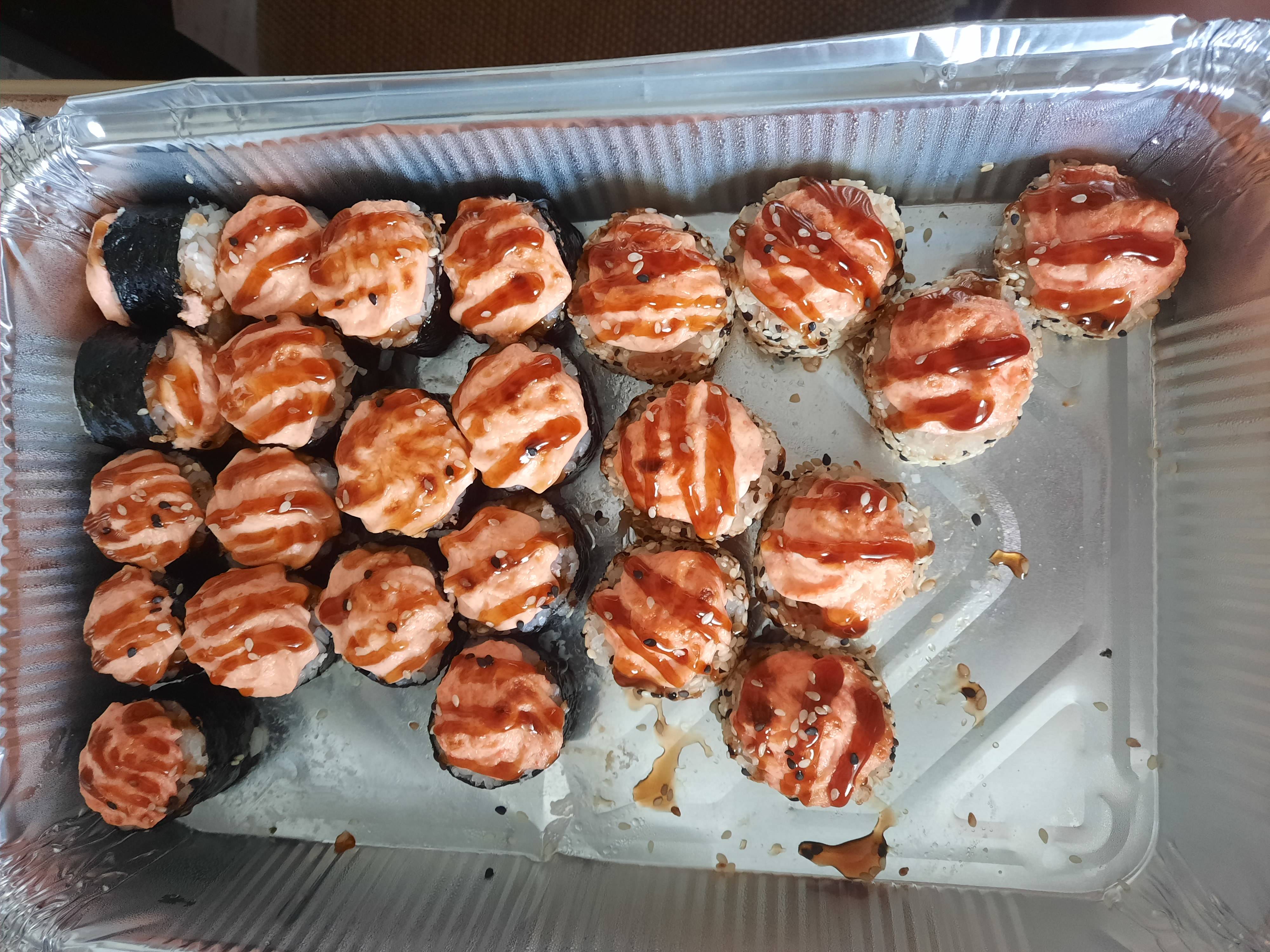 - ролл "Кани запеченный": рис, нори, микс краба, соус - 8 шт.