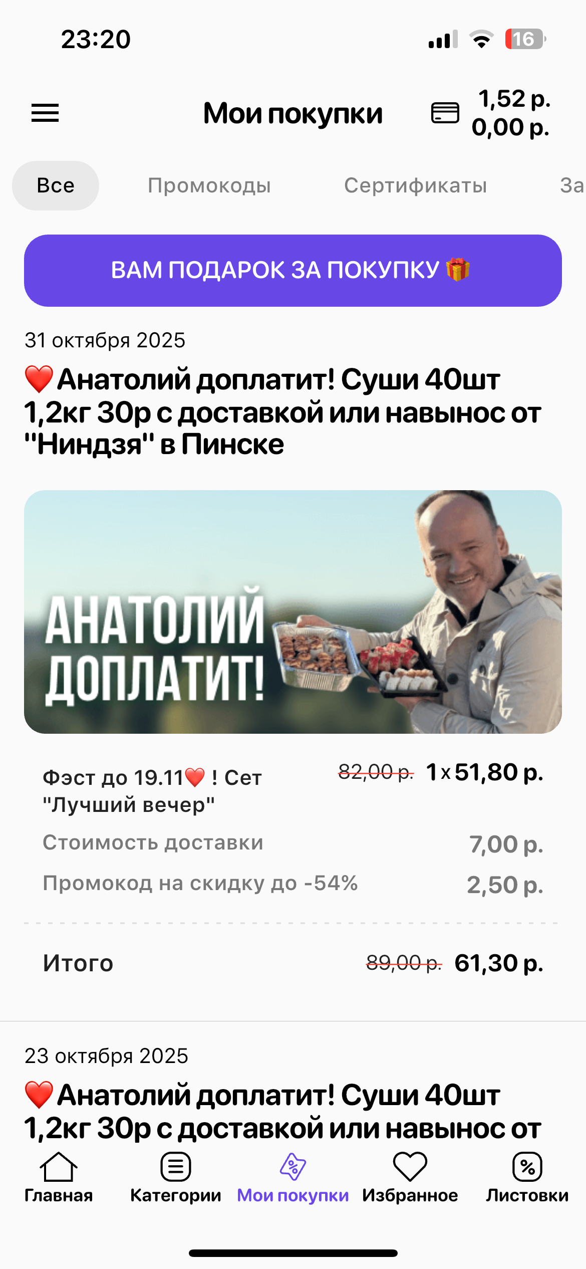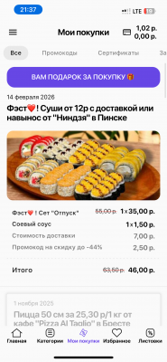 - Промокод дает право на скидку до 44% на суши-сеты от кафе "Ниндзя" в Пинске